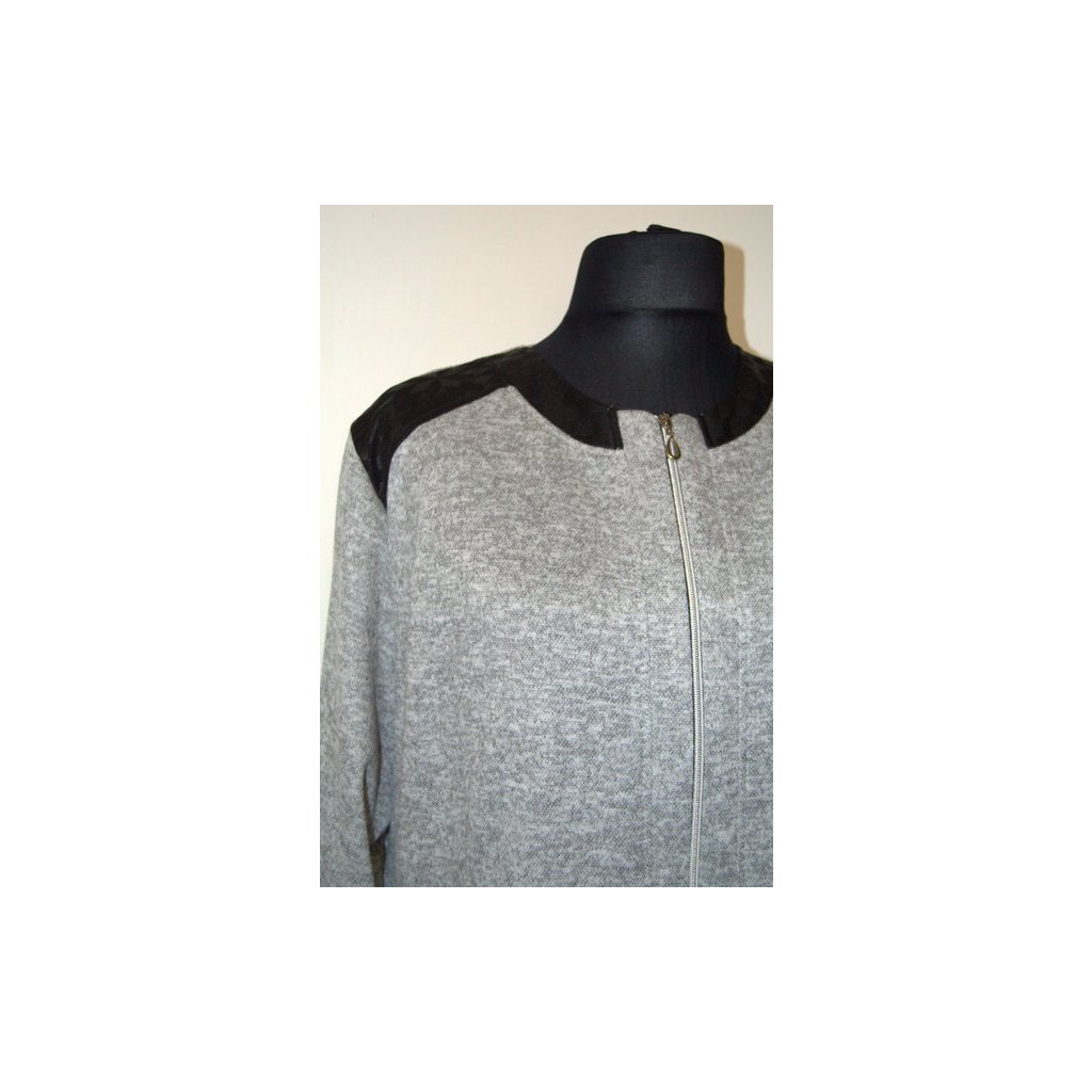 1033 Dámský kabátek na zip, šedý s černými doplňky, - vel. 58