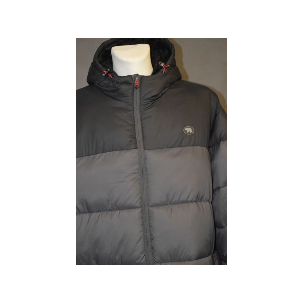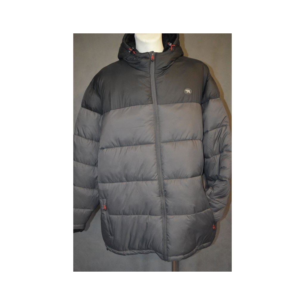Pánská zimní bunda šedá, na zip s kapucí, vnější kapsy na zip, vnitřní náprsní kapsička, vniřní material "beránek"