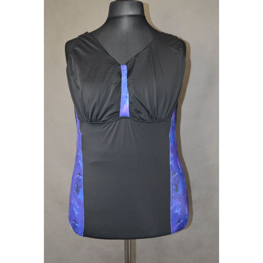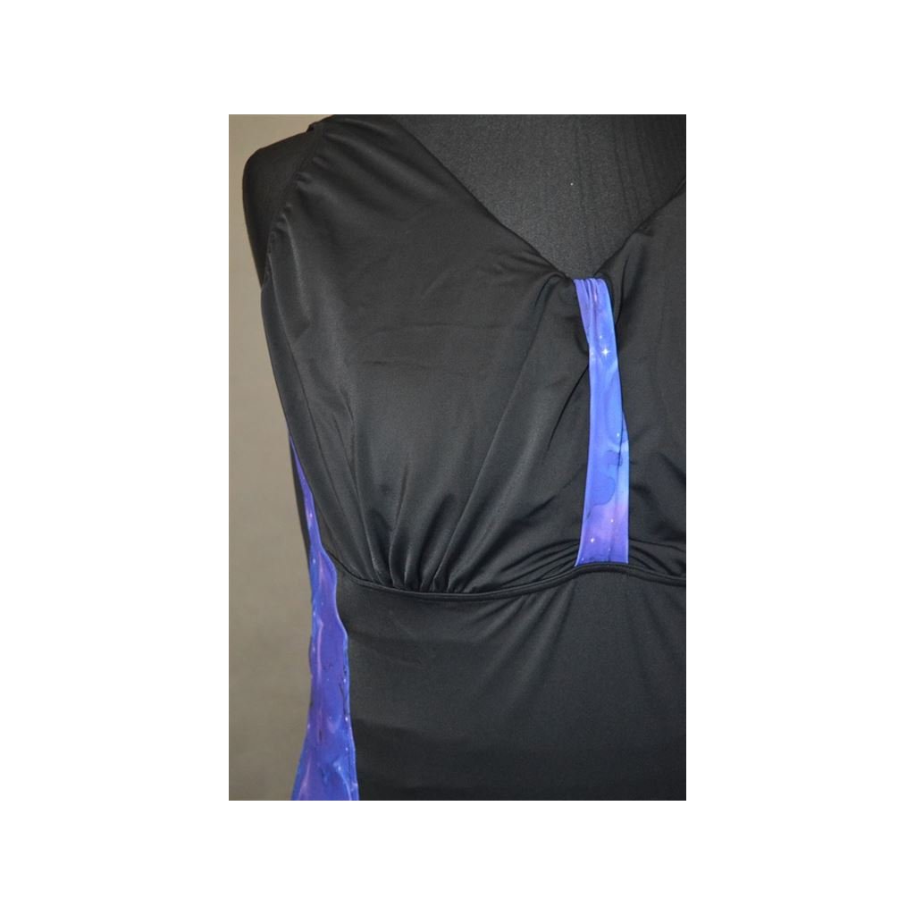 Dámské jednodílné plavky - černé jednobarevné- s modrými doplňky, přestřižené pod prsy, podšitý přední díl, širší ramínka, hlubší košíčky, - vel. 60,62,64