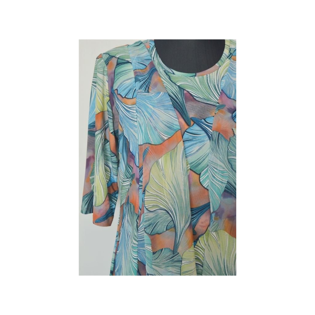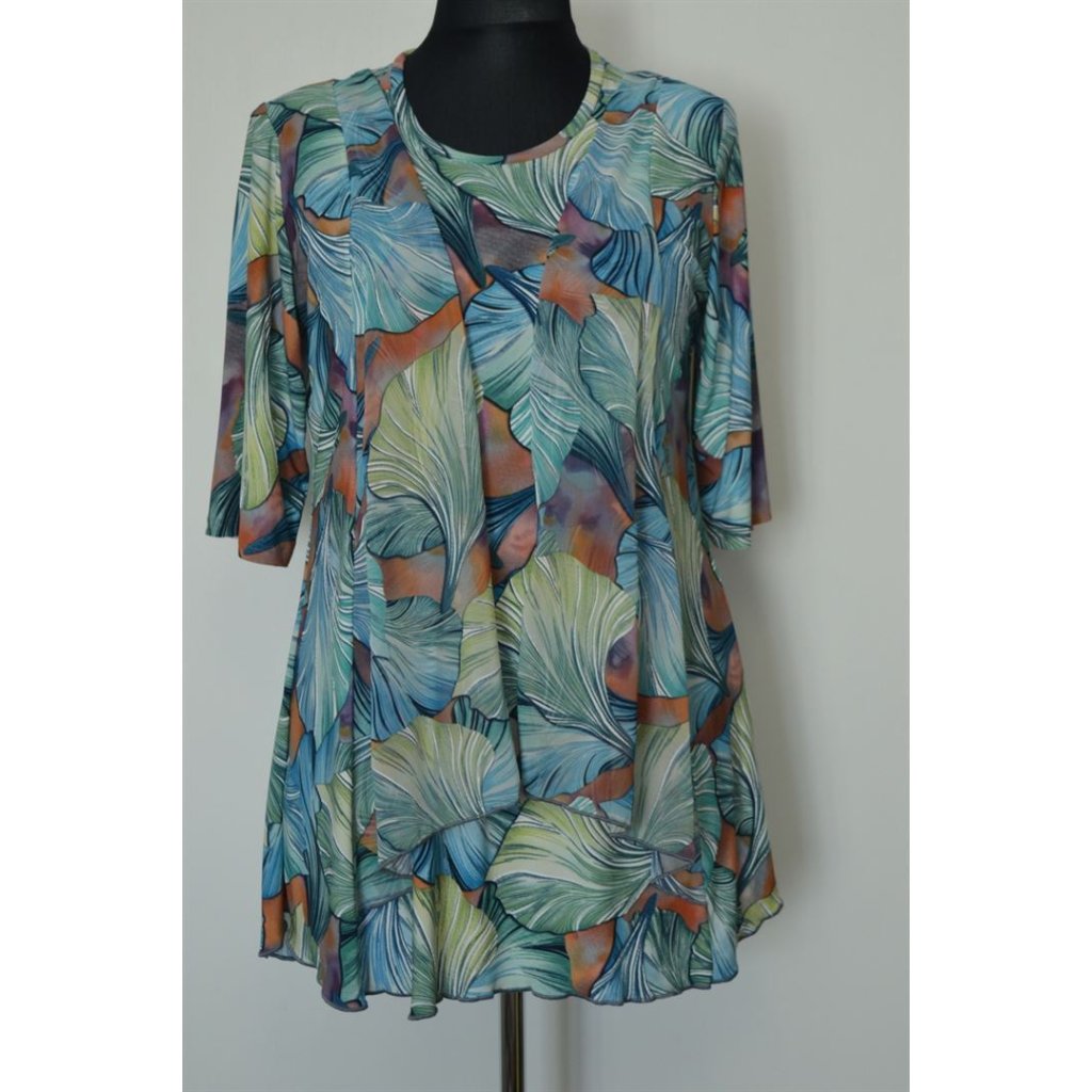 Krásná, dámská tyrkysovo-zeleno-cihlová halenka , kul. výstřih, loktový rukáv, vycpávky, halena je střižena do "A", efekt 2v1 , ale halena je sešitá dohromady, (není to top a kabátek) Velice příjemný splývavý materiál