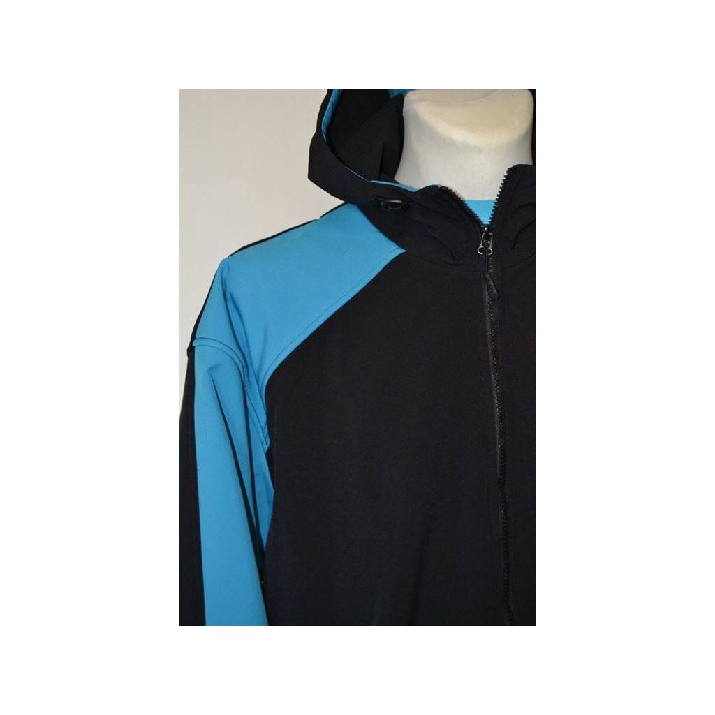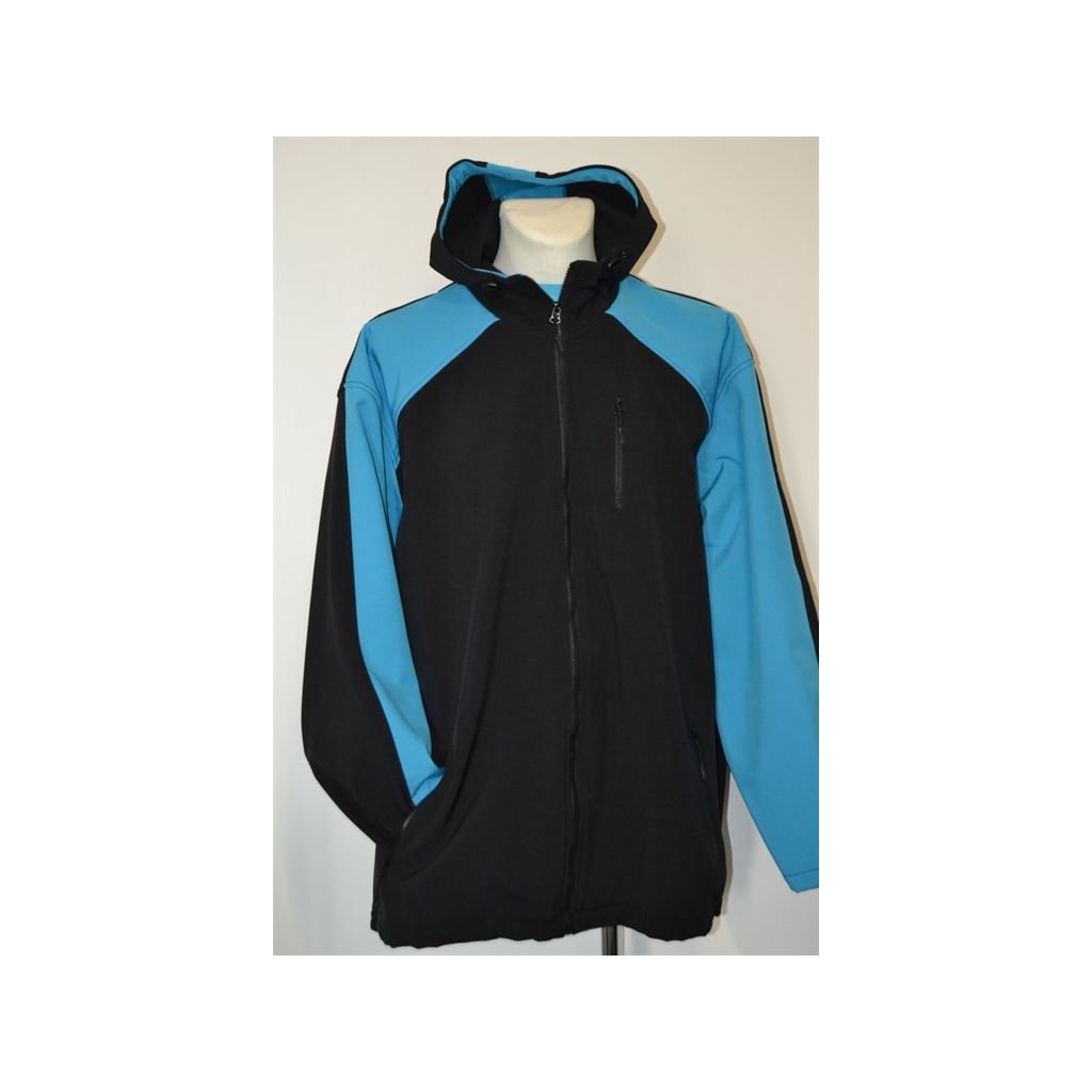 Moderní softsheelová černo-tyrkysová bunda, zapínání na zip, kapuce, v dolní části dvě kapsy na zip, náprsní kapsa na zip, bunda je celoroční, pro její dobré vlastnosti je vhodná na kolo, turistiku i na lyže. ( tento material je proti větru i dešti) vel. 3XL, 4XL, 5XL,6XL,7XL,8XL ,9XLmaterial 100% polyester