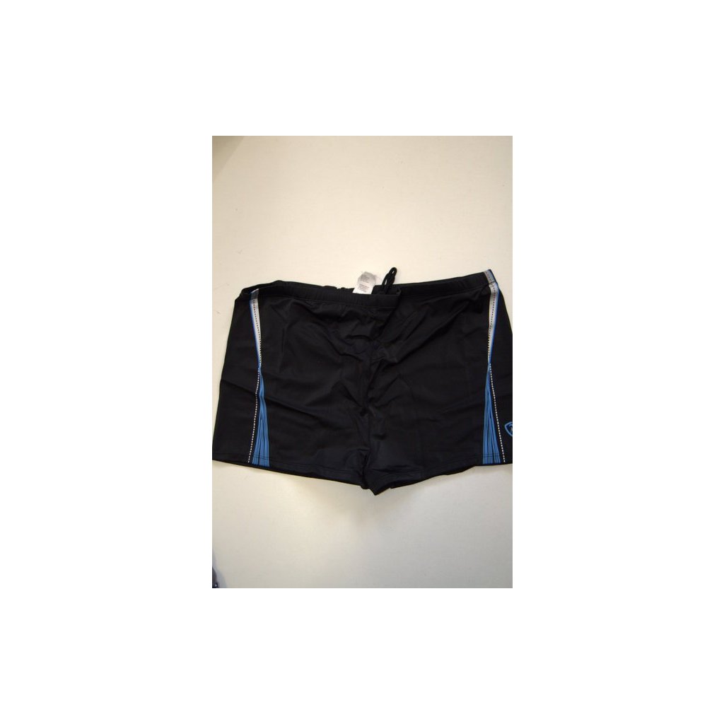 Pánské plavky s nohavičkou, pas 108 cm, černé s modro-bílým potiskem na boku,, v pase na gumu + šňůrka na stažení - velice kvalitní materiál - vel.XL-XXL