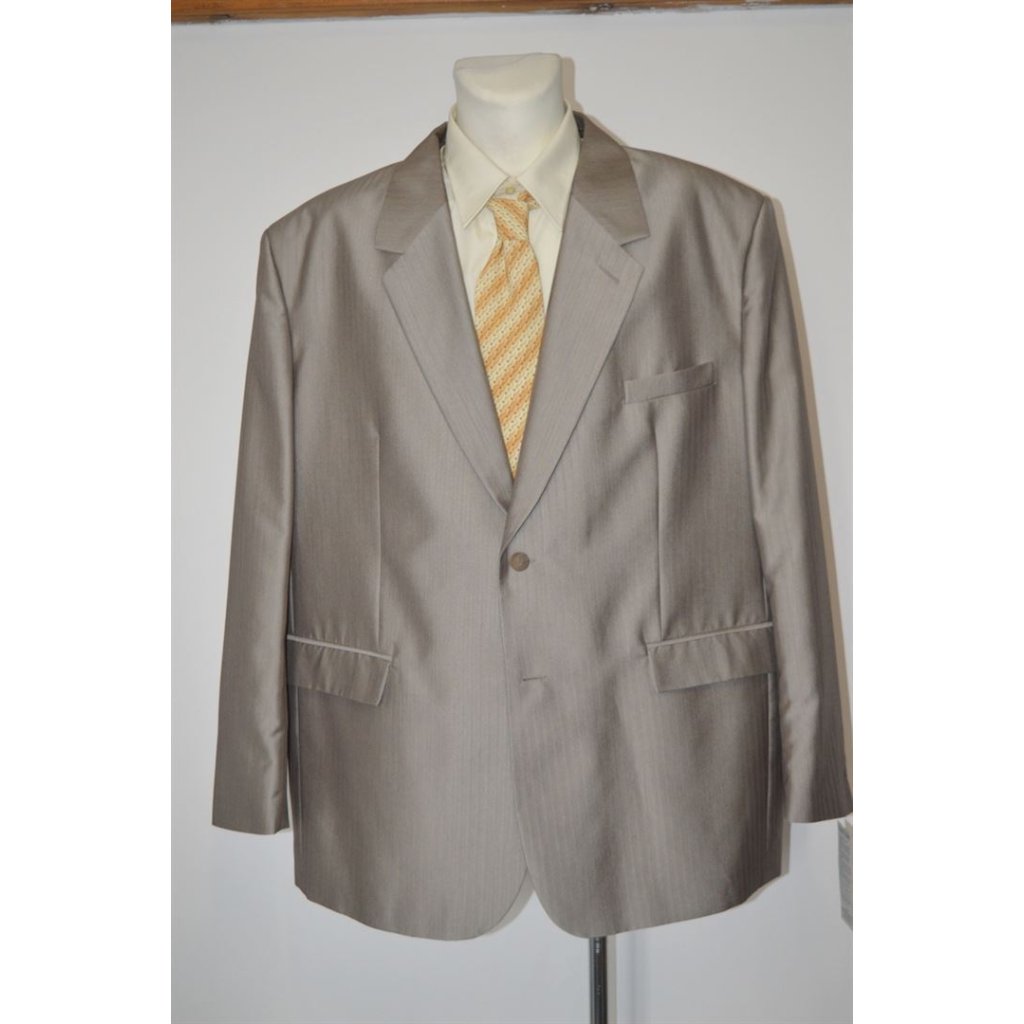 Komplet: Pánské sako s leskem (zlatý odstín) - sako s podšívkou, klasický střih, kapsy s patkami, lištová kapsa, vnitřní náprsní kapsy, košile šampaň vel. 46 ( 140 cm obvod košile,), kravata + druhá kravata zdarma