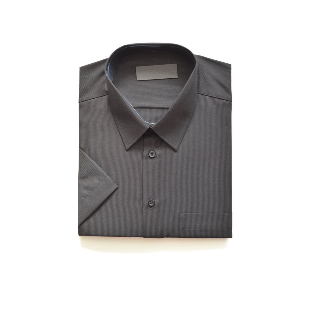 Pánská společenská košile s kapsičkou, kr. rukáv, černá plastickým proužkem, (ton v tónu), materiál: 70% bavlna, 30% polyester. ČESKÝ VÝROBEK, vel 47, 48