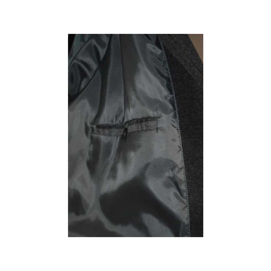 Luxusní flaušový kabát, tm šedý , na př. díle vnitřní náprsní kapsa na zip, dole lištové kapsy, kabátek má fazonku ( límec), a je na knoflíky, 80% vlna, 12%polyamid, 8 % kašmír, podšívka 100% polyester , kabát je vhodný na běžné nošení i do společnosti - na sako