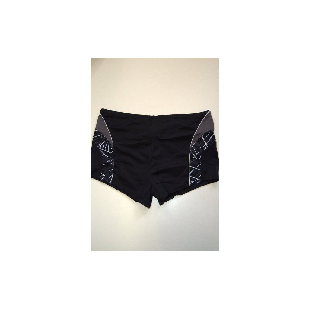 4552 Pánské plavky s nohavičkou, černé s šedo-bílým potiskem, XL-XXL