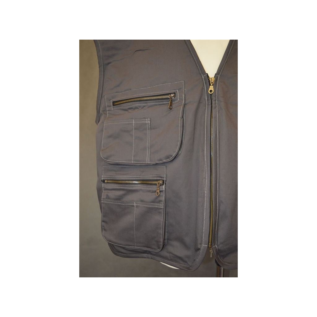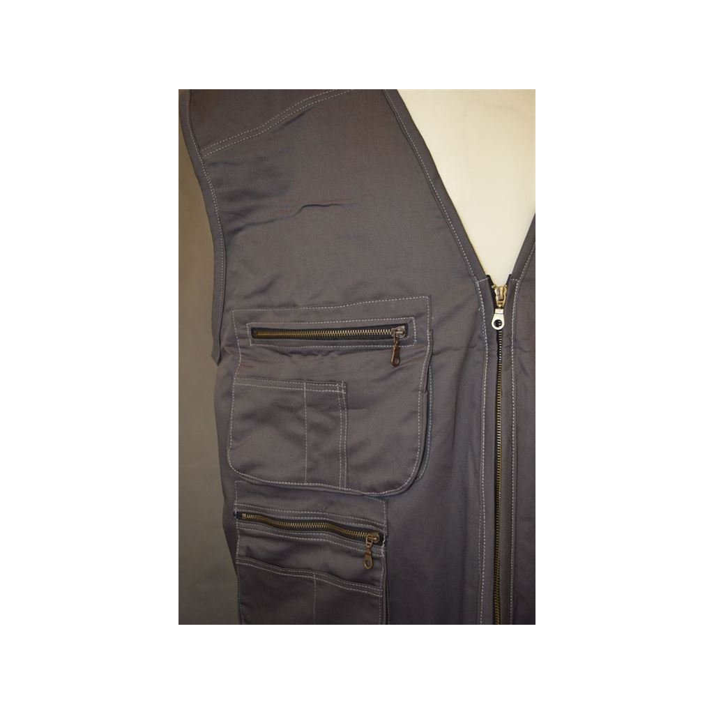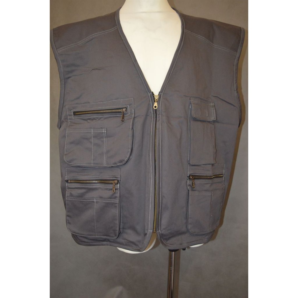 Pánská šedá plátěná vesta s kapsama, zapínání na zip - vel. 4XL, 5XL,6XL, 7XL,8XL